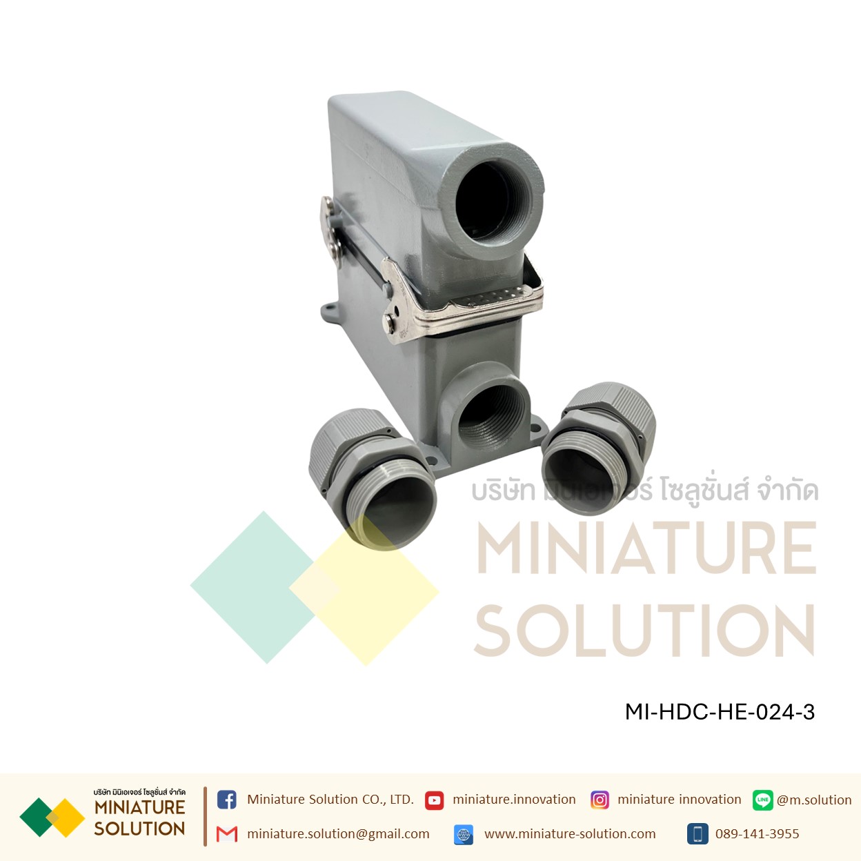 ปลั๊กเชื่อมต่อใช้สำหรับงานหนัก Heavy Duty Connectors Power แบบขันสกรู Pin Cores Line 16A 500V HDC-HE-4/6/10/16/20/24/32/48 Core กันน้ำ (24 core side exit high seat ฐานเรียบ)(HDC-HE-024-3)