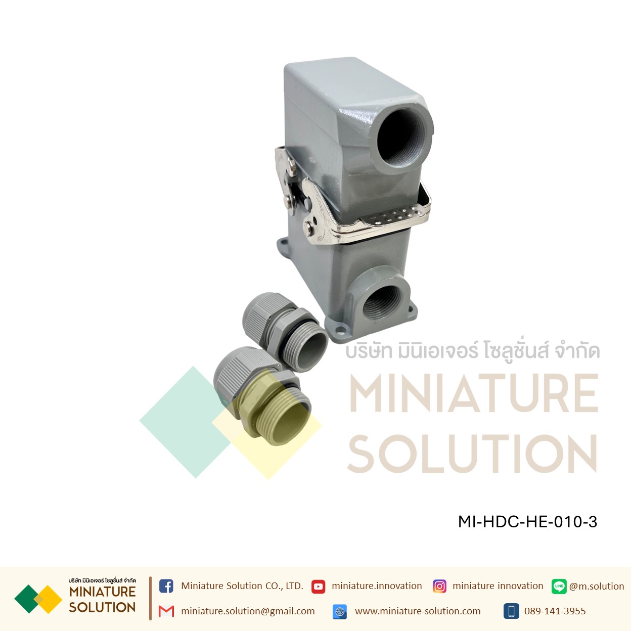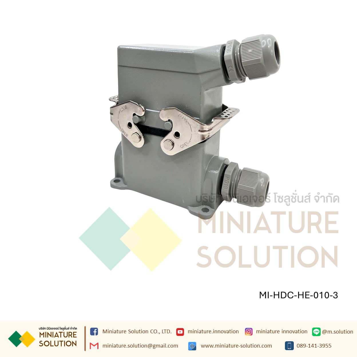 ปลั๊กเชื่อมต่อใช้สำหรับงานหนัก Heavy Duty Connectors Power แบบขันสกรู Pin Cores Line 16A 500V HDC-HE-4/6/10/16/20/24/32/48 Core กันน้ำ (10 core side exit high seat ฐานเรียบ)(HDC-HE-010-3)