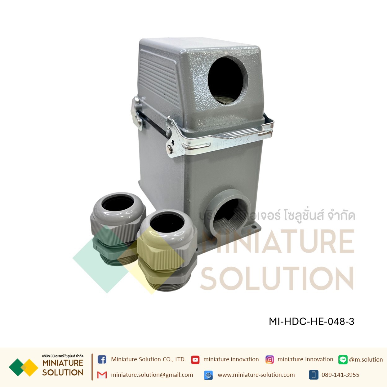 ปลั๊กเชื่อมต่อใช้สำหรับงานหนัก Heavy Duty Connectors Power แบบขันสกรู Pin Cores Line 16A 500V HDC-HE-4/6/10/16/20/24/32/48 Core กันน้ำ (32 core side exit high seat ฐานเรียบ)(HDC-HE-048-3)