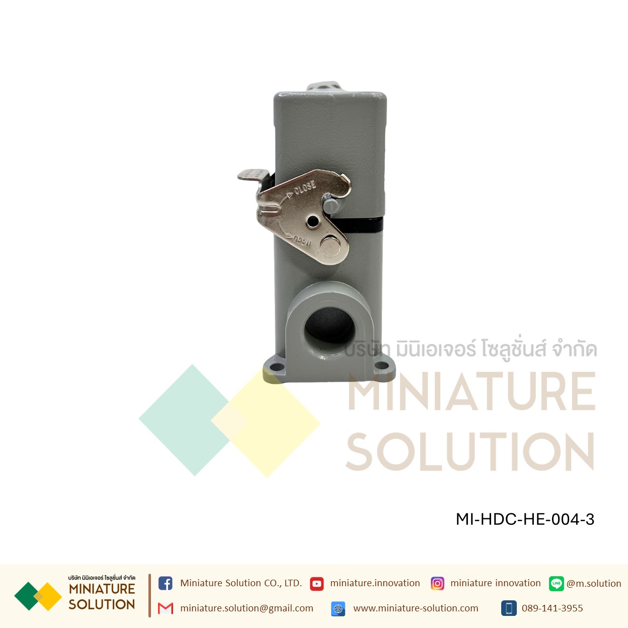 ปลั๊กเชื่อมต่อใช้สำหรับงานหนัก Heavy Duty Connectors Power แบบขันสกรู Pin Cores Line 16A 500V HDC-HE-4/6/10/16/20/24/32/48 Core กันน้ำ (4 core side exit high seat ฐานเรียบ)(HDC-HE-004-3)
