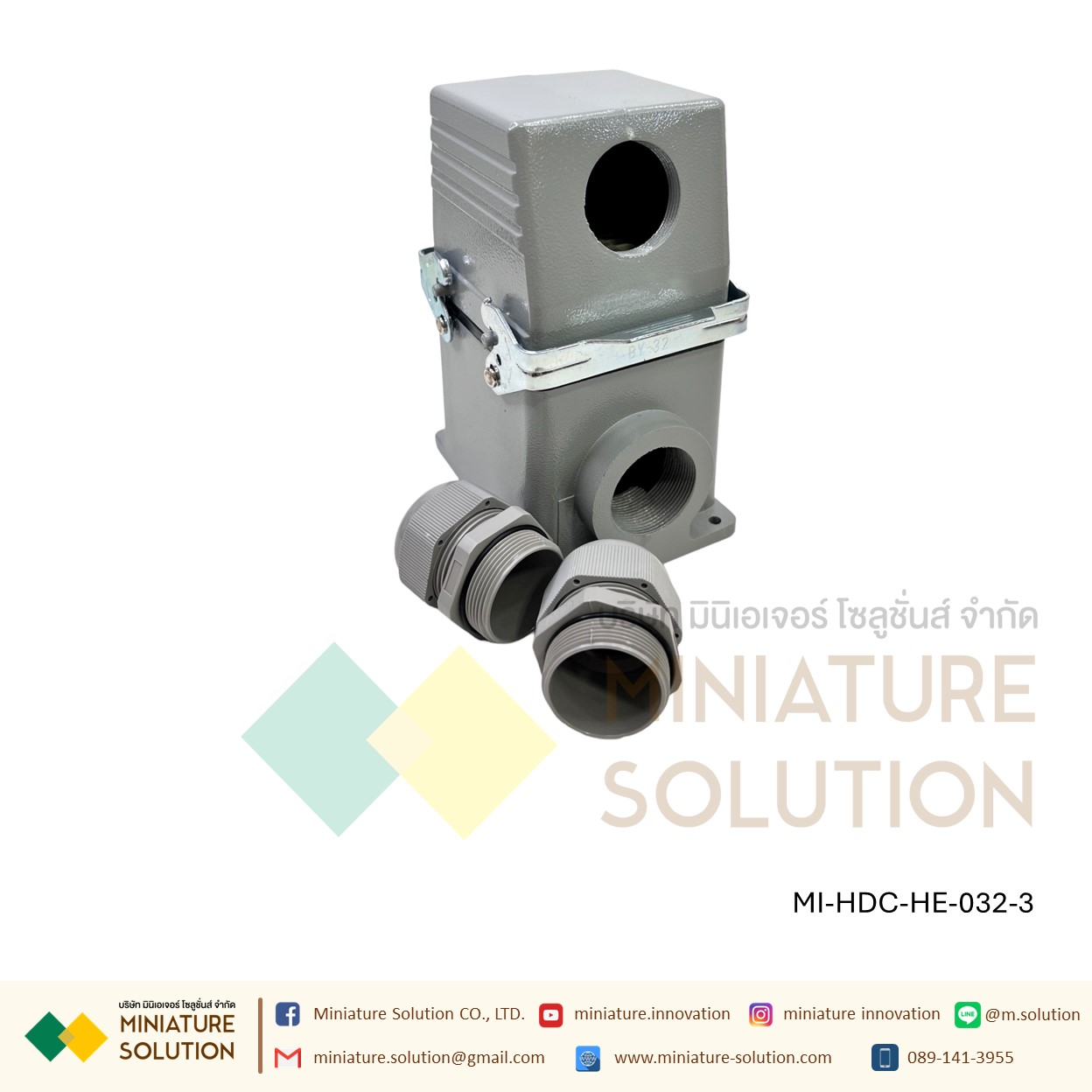 ปลั๊กเชื่อมต่อใช้สำหรับงานหนัก Heavy Duty Connectors Power แบบขันสกรู Pin Cores Line 16A 500V HDC-HE-4/6/10/16/20/24/32/48 Core กันน้ำ (32 core side exit high seat ฐานเรียบ)(HDC-HE-032-3)