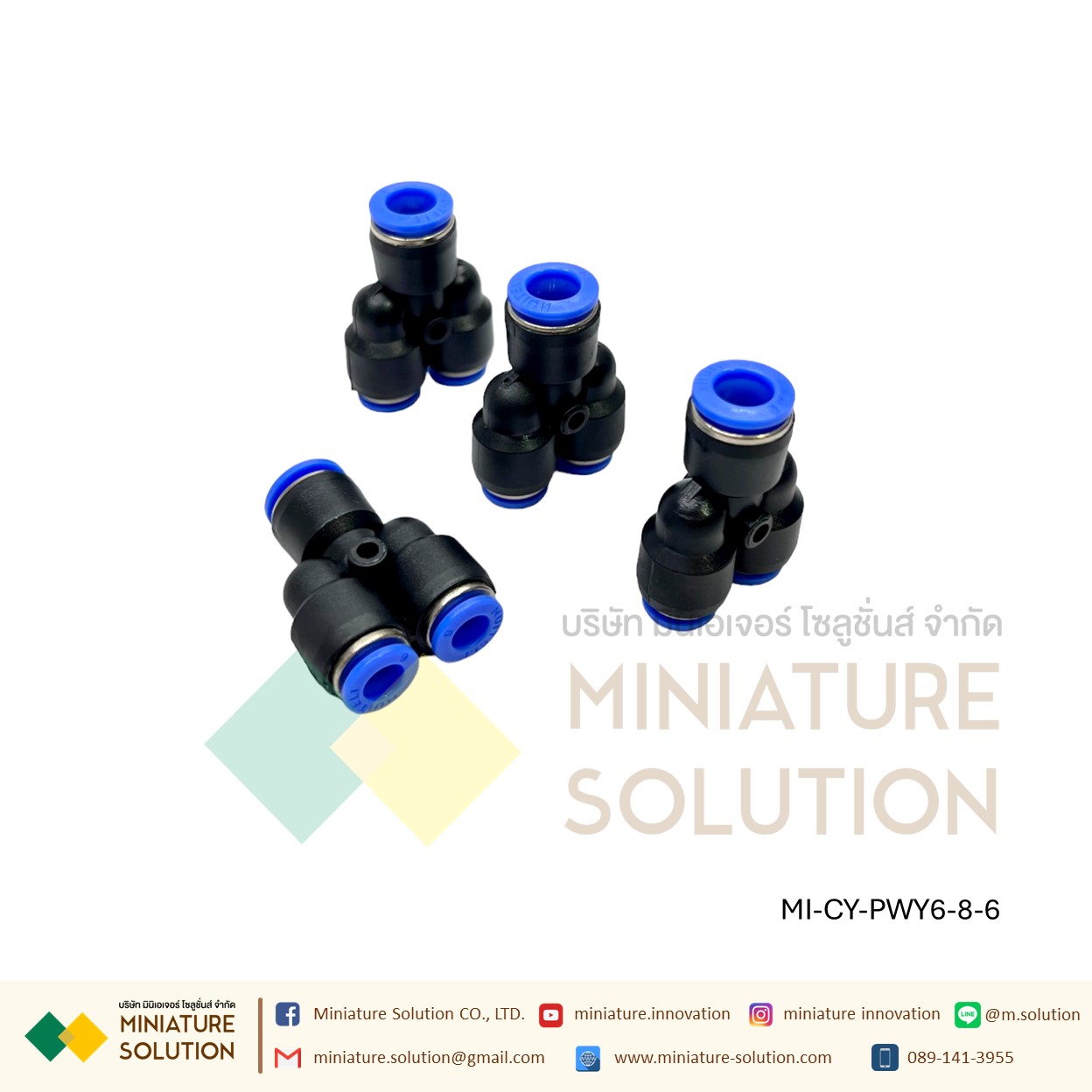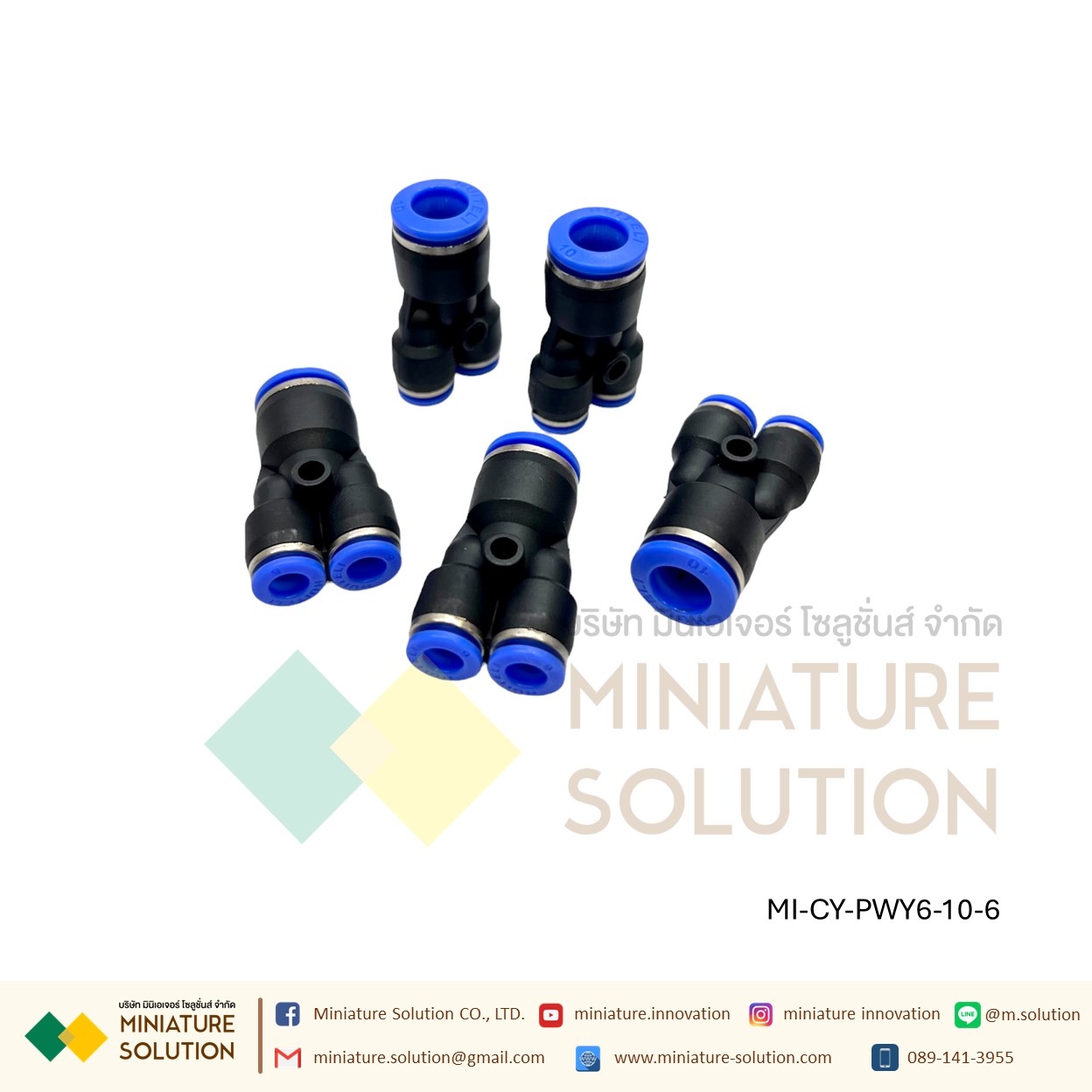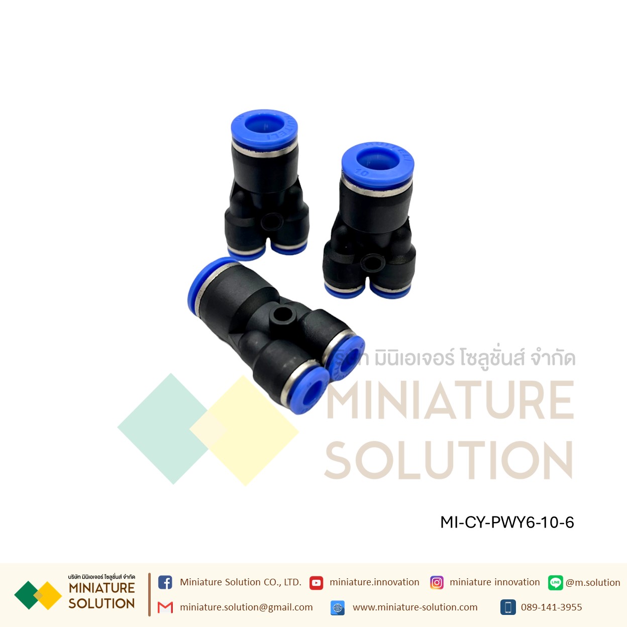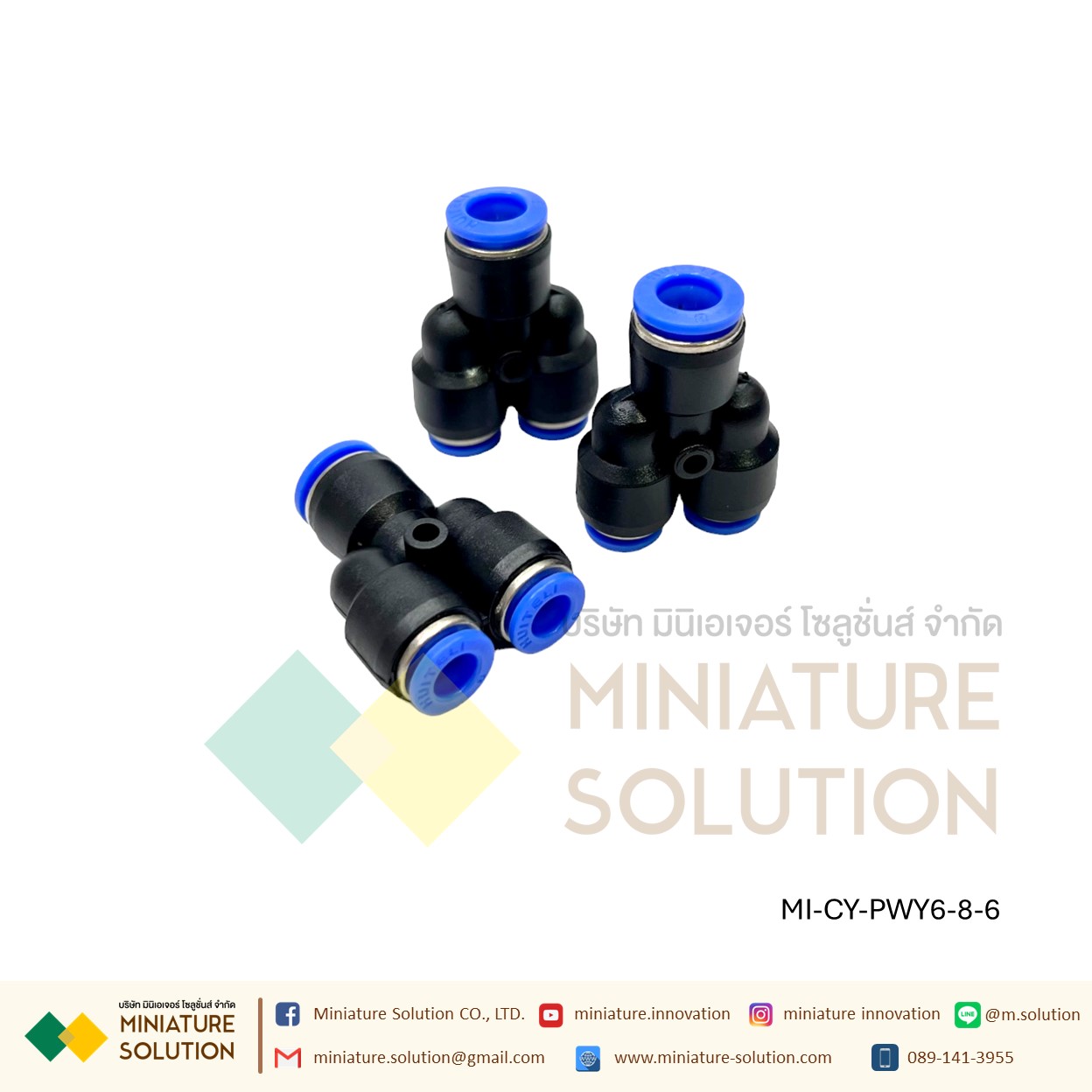 ข้อต่อลม 3ทาง (Y) ลด ท่อ ข้อต่อลม 3 ทาง ข้อต่อลมนิวเมติกส์ข ทรง Y ฟิตติ้งลมสามทาง ใช้กับสายลม(PWY6-8-6)