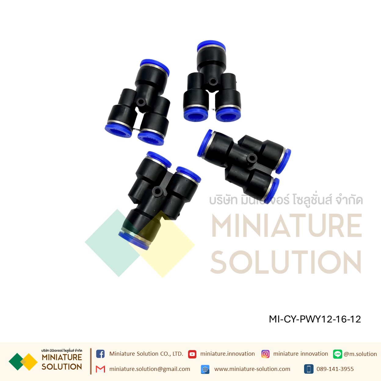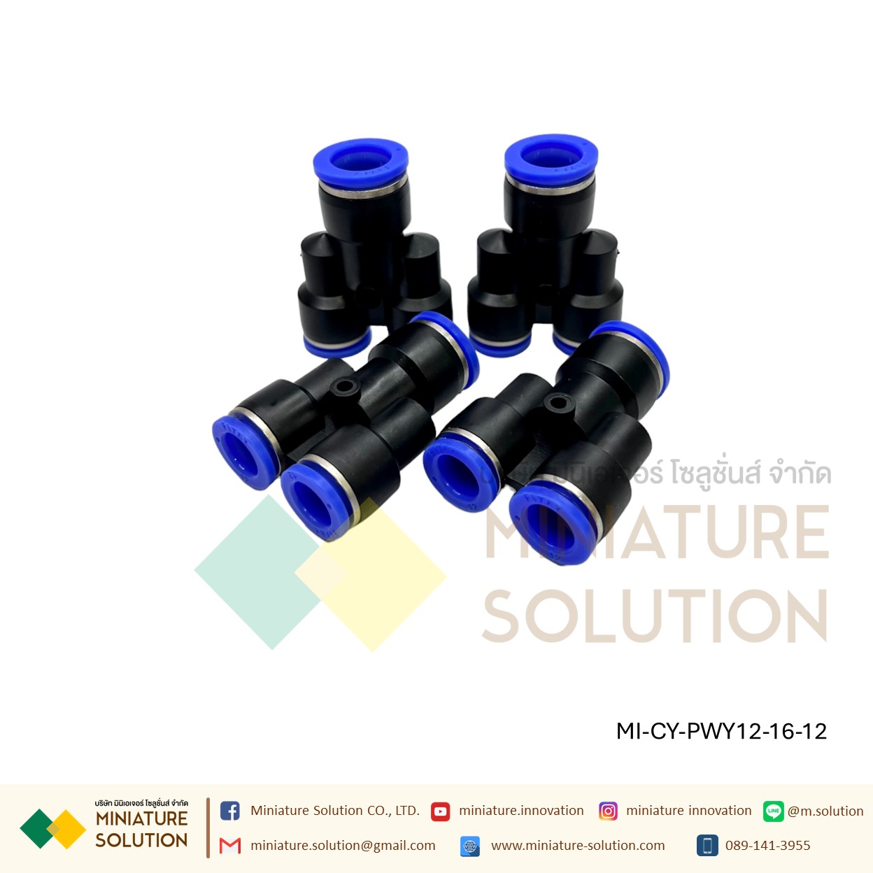 ข้อต่อลม 3ทาง (Y) ลด ท่อ ข้อต่อลม 3 ทาง ข้อต่อลมนิวเมติกส์ข ทรง Y ฟิตติ้งลมสามทาง ใช้กับสายลม(PWY12-16-12)