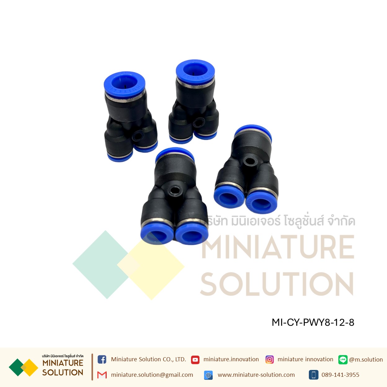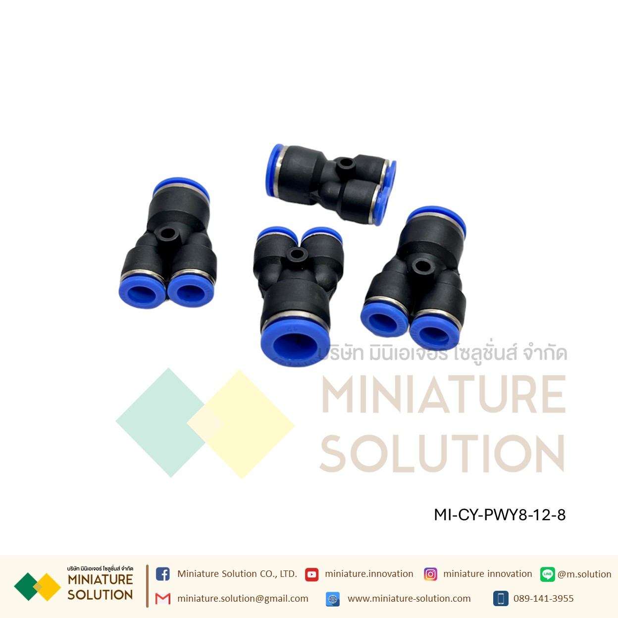 ข้อต่อลม 3ทาง (Y) ลด ท่อ ข้อต่อลม 3 ทาง ข้อต่อลมนิวเมติกส์ข ทรง Y ฟิตติ้งลมสามทาง ใช้กับสายลม(PWY8-12-8)