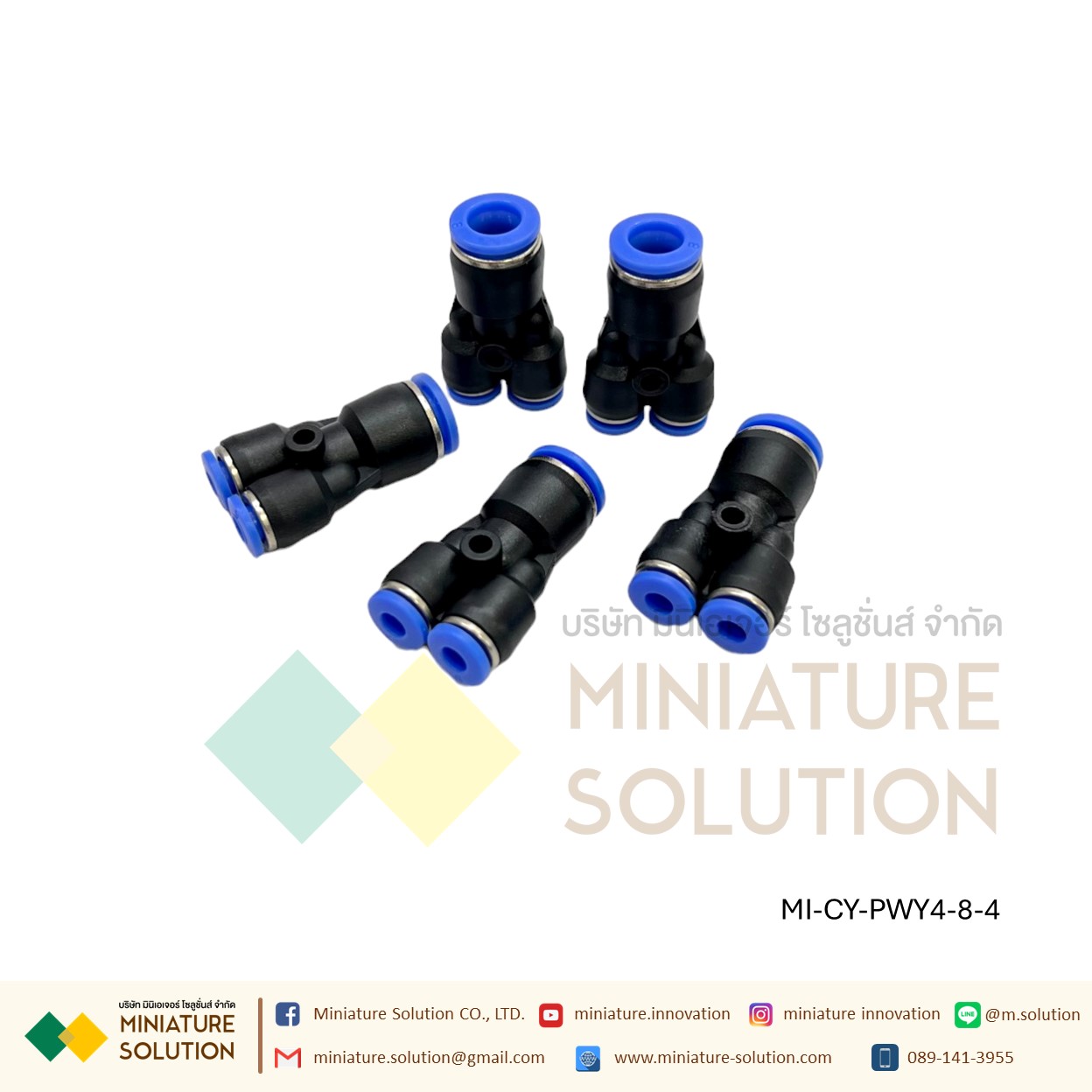 ข้อต่อลม 3ทาง (Y) ลด ท่อ ข้อต่อลม 3 ทาง ข้อต่อลมนิวเมติกส์ข ทรง Y ฟิตติ้งลมสามทาง ใช้กับสายลม(PWY4-8-4)