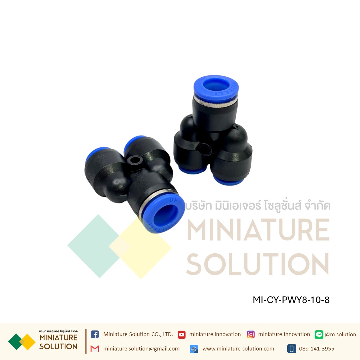 ข้อต่อลม 3ทาง (Y) ลด ท่อ ข้อต่อลม 3 ทาง ข้อต่อลมนิวเมติกส์ข ทรง Y ฟิตติ้งลมสามทาง ใช้กับสายลม(PWY8-10-8)
