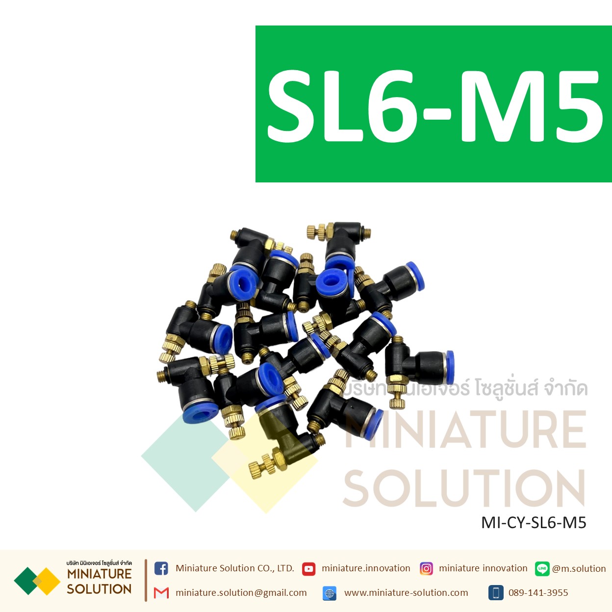 ข้อต่อลม ฟิตติ้งลม วาล์วปรับลม ข้อต่อปรับลมงอ 90 ข้อต่อปรับความเร็วลมงอ 90 ขนาดสายเสียบ Cylinder speed adjustment valve SL6-M5 4-10-12-8-02-04 (SL6-M5)