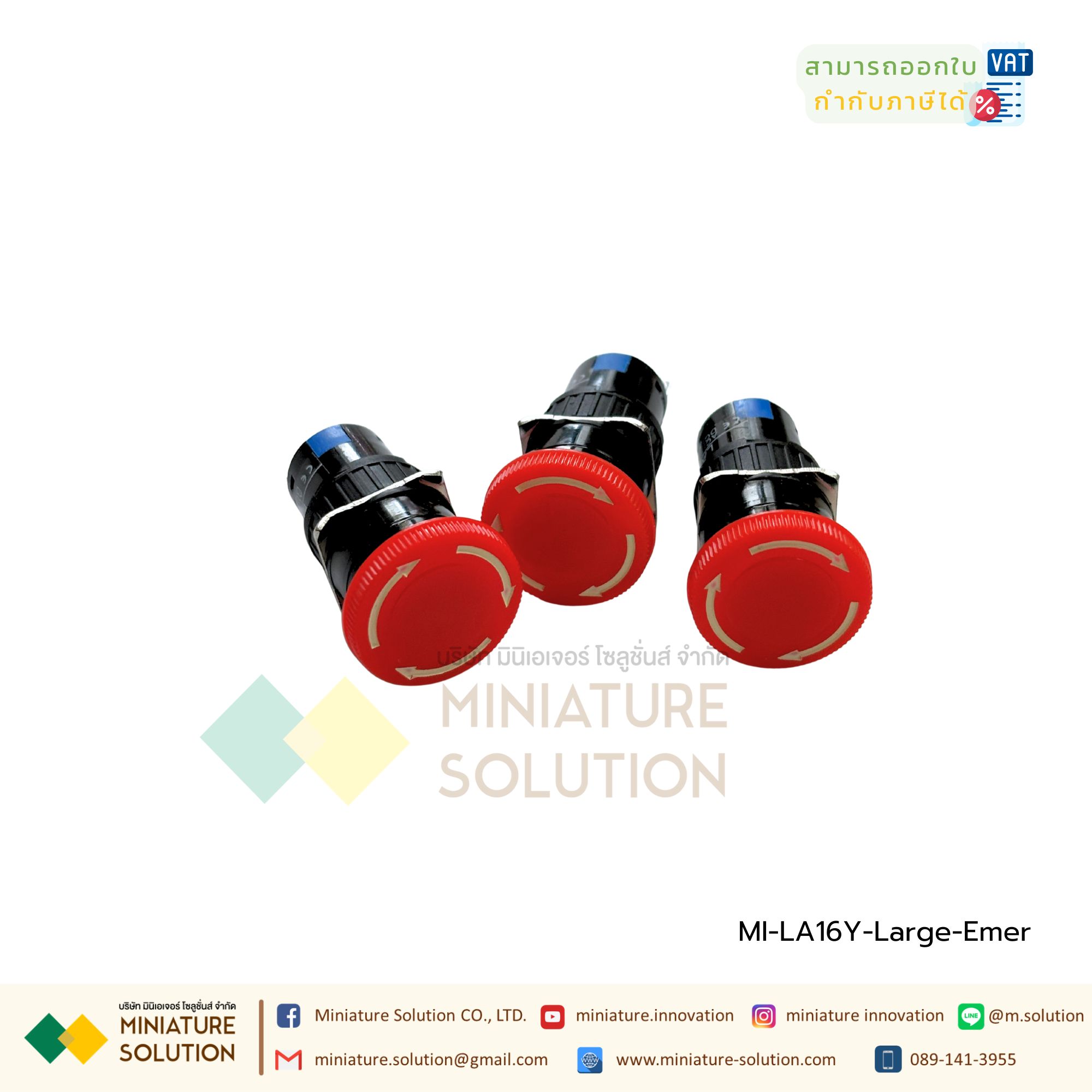 MI-LA16Y-Large-Emer CNAOM สวิตช์ฉุกเฉิน Emergency Switch Stop LA16Y 1NO+1NC Contact 3A (LA16Y Large Head Emergency Stop: One Open, One Close (3 Pins))