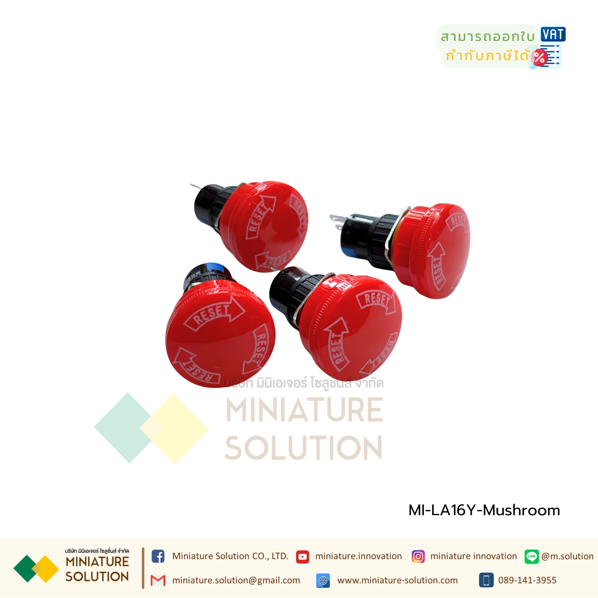 MI-LA16Y-Mushroom CNAOM สวิตช์ฉุกเฉิน Emergency Switch Stop LA16Y 1NO+1NC Contact 3A (LA16Y Mushroom Head Emergency Stop: One Open, One Close (3 Pins))
